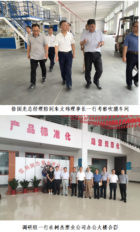 9月1日,调研组一行在常州树杰塑业有限公司徐国光总经理的陪同下,考察了树杰公司的吹膜车间及印刷车间。徐总经理向朱文玮理事长一行介绍了公司的制膜设备情况,并在座谈时与调研组交流了公司的产品应用领域,工艺及装备的信息化和自动化,产品市场情况及产量等方面。