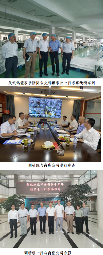 9月2日,在常州商隆产业用纺织品有限公司调研期间,调研组在吴道元董事长的陪同下,考察了公司的现代化缝纫车间,并进行了座谈。