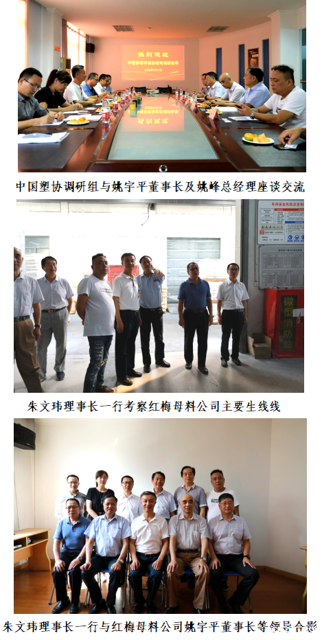 9月1日,调研组一行来到江苏普莱克红梅色母料股份有限公司,受到了姚宇平董事长及姚峰总经理的热情接待。朱文玮理事长一行考察了红梅母料公司主要生产线,并与姚董事长及姚总经理就公司创业历史、2019年至2020年发展基本情况、主营产品及产能、科研合作、疫情时期企业创新研发等方面进行了交流。