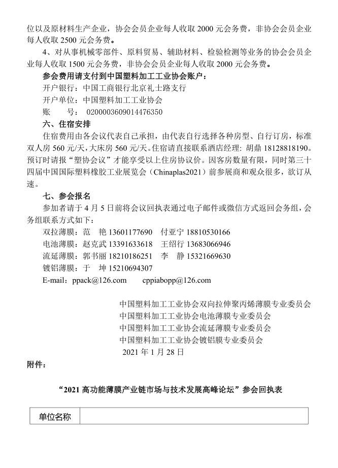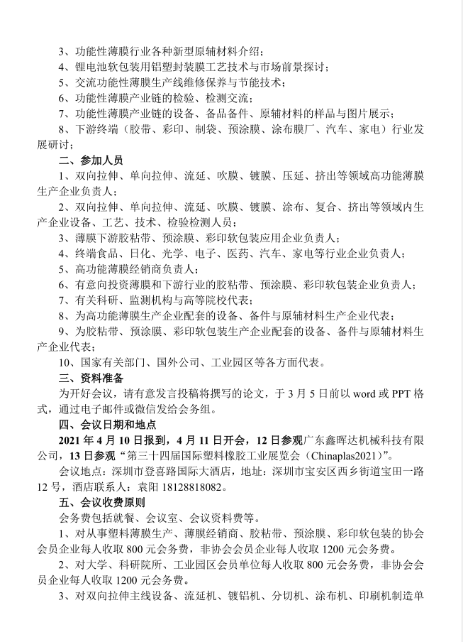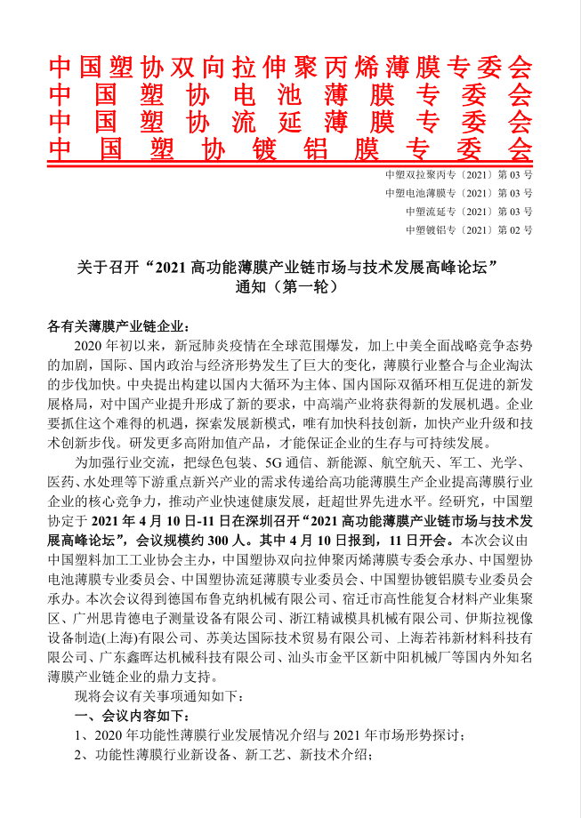 关于召开“2021高功能薄膜产业链市场与技术发展高峰论坛” 通知(第一轮)