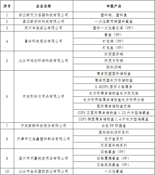 附件:关于首批中华环境保护基金会-美团外卖青山计划专项基金“‘易回收易再生’塑料包装容器推荐名录”企业和产品名单公告