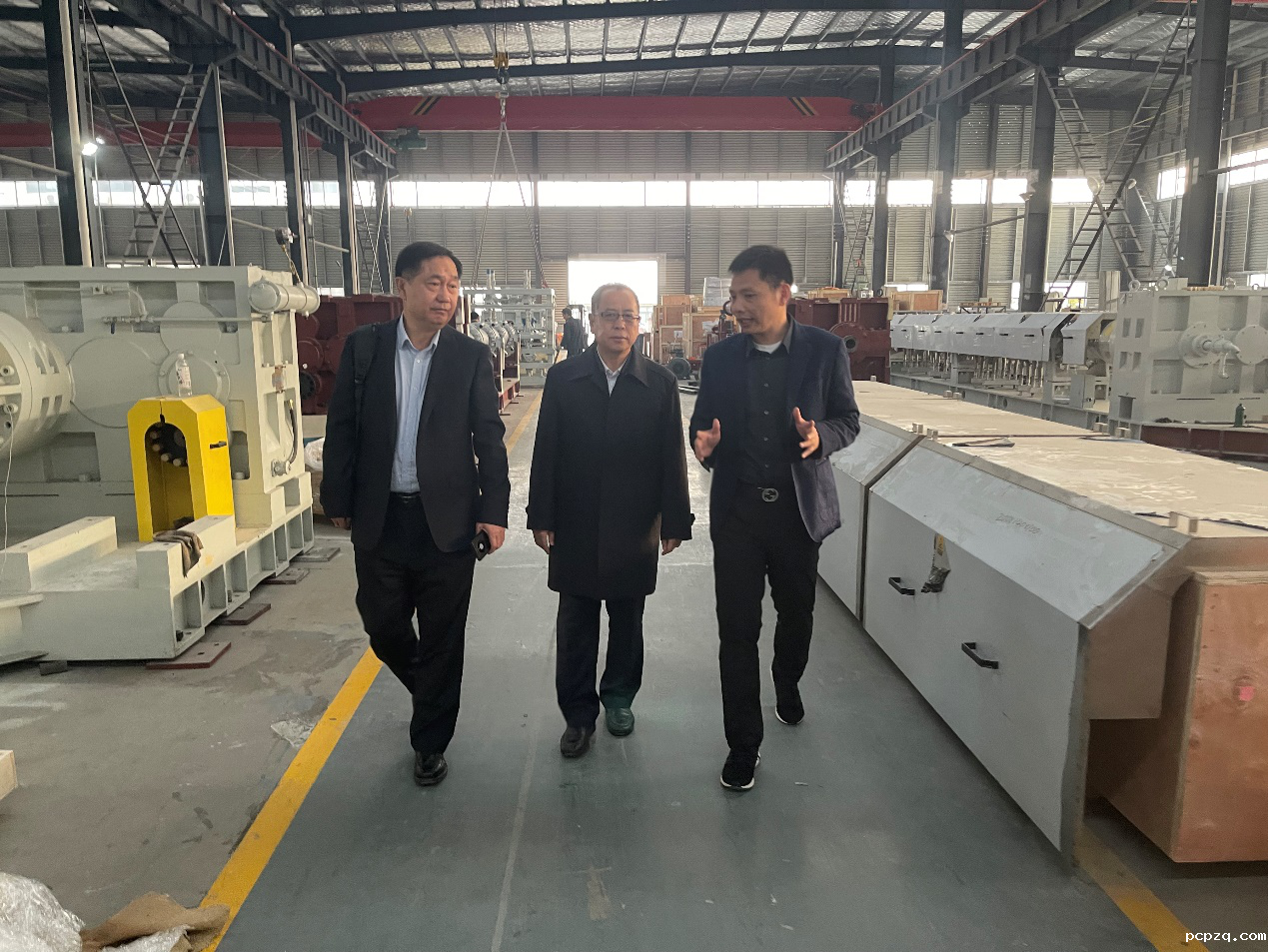 在南京越升挤出机械有限公司,陈志强董事长、张海军副总经理陪同王占杰理事长一行参观了挤出机生产车间及发泡板生产线。在交流当中,陈董事长表示,南京越升注重研发创新,打造研发团队,为客户提供解决方案,以聚合物挤出加工过程工艺为基础, 聚合物流变以及超龄界物理微发泡等技术为先导, 开发设计制造各类新的聚合物加工装备和新型发泡高分子材料,今年推出了行业领先的PET微发泡片材生产线、PLA微发泡片材生产线,在节能和轻量化上更进一步,在废旧塑料污染治理方面也有所创新。南京越升以创新为驱动力,在今年中国轻工业联合会发布的《中国轻工业装备制造行业五十强企业评价结果公告》中,成功入围50强。