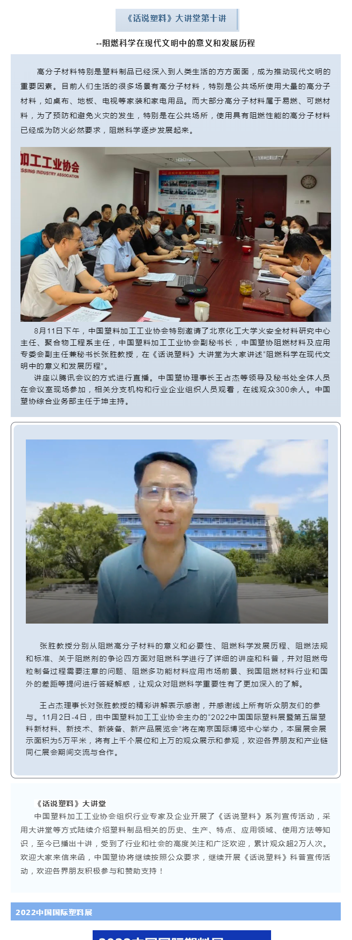 《话说塑料》大讲堂第十讲--阻燃科学在现代文明中的意义和发展历程