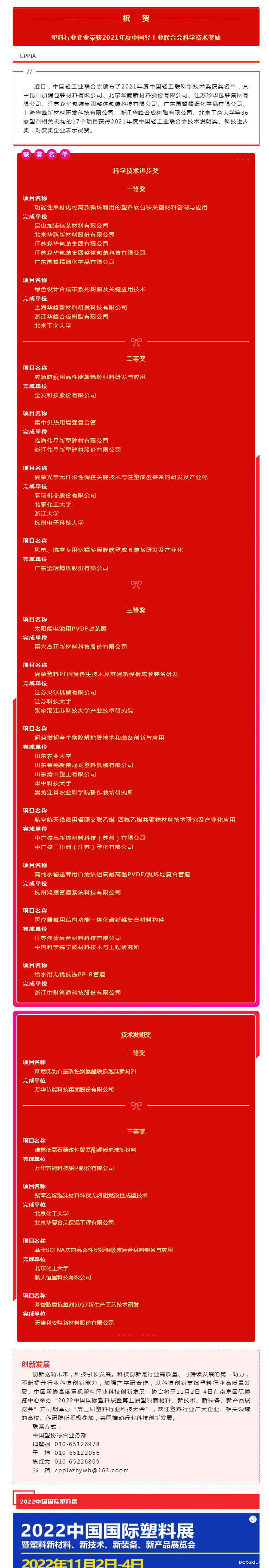 祝贺塑料行业企业荣获2021年度中国轻工业联合会科学技术奖励