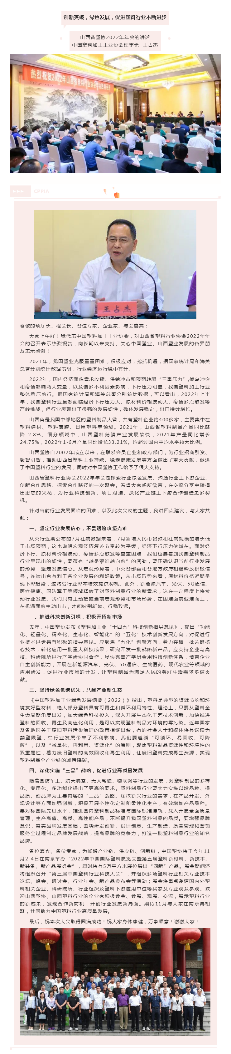 创新突破,绿色发展,促进塑料行业不断进步