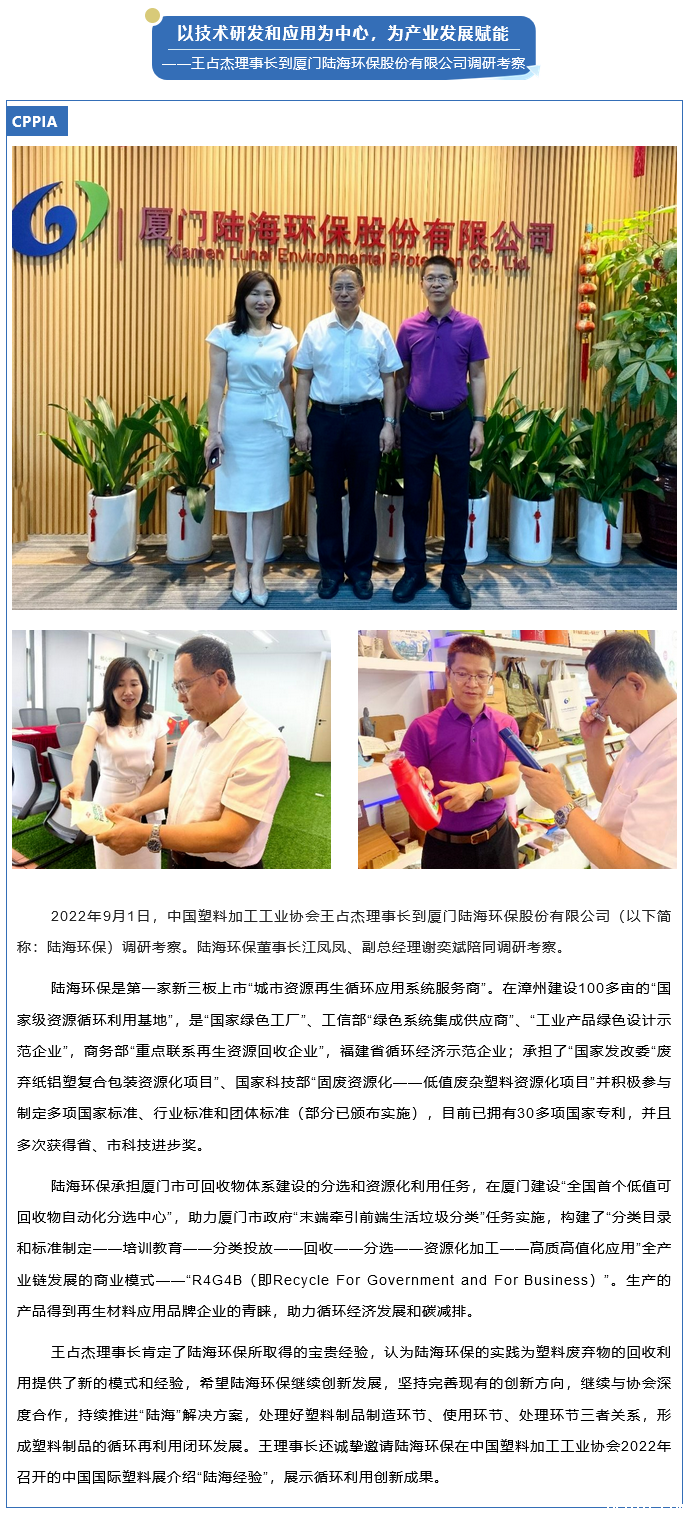 王占杰理事长到厦门陆海环保股份有限公司调研考察