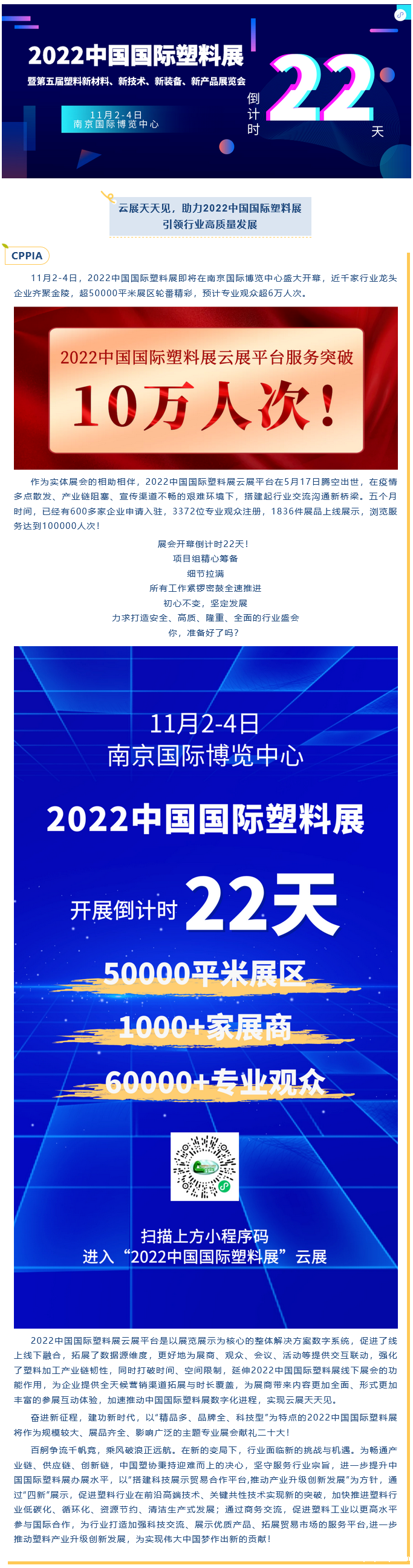 倒计时22天!2022中国国际塑料展云展平台访问人次突破10万!