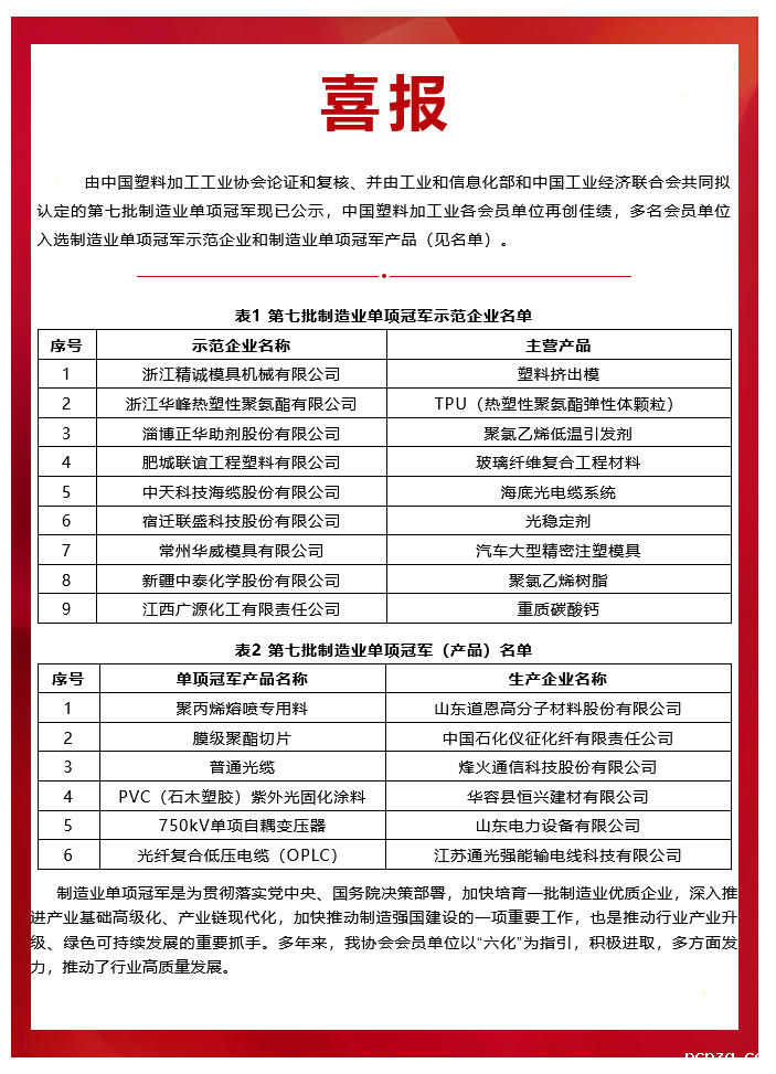 喜报 | 我协会会员单位入选制造业单项冠军示范企业和制造业单项冠军产品!