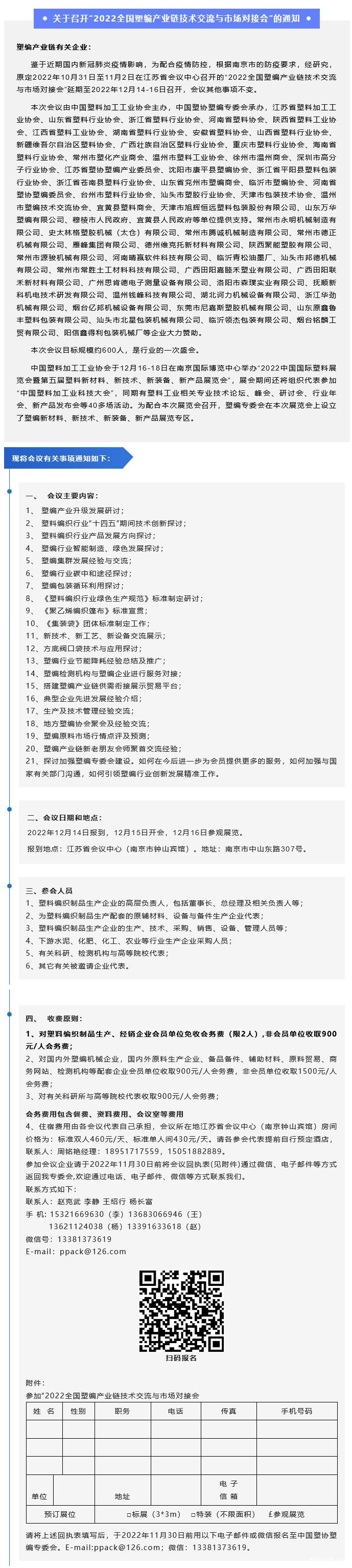 会议 | 关于召开“2022全国塑编产业链技术交流与市场对接会”的通知