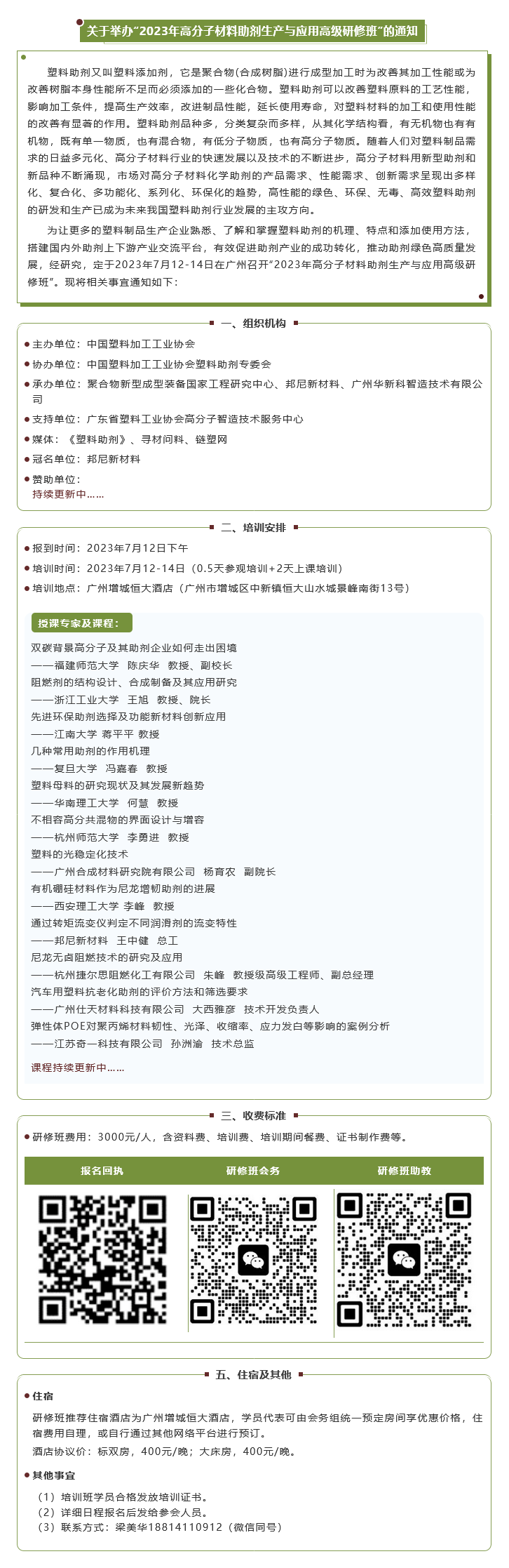 关于举办“2023年高分子材料助剂生产与应用高级研修班”的通知