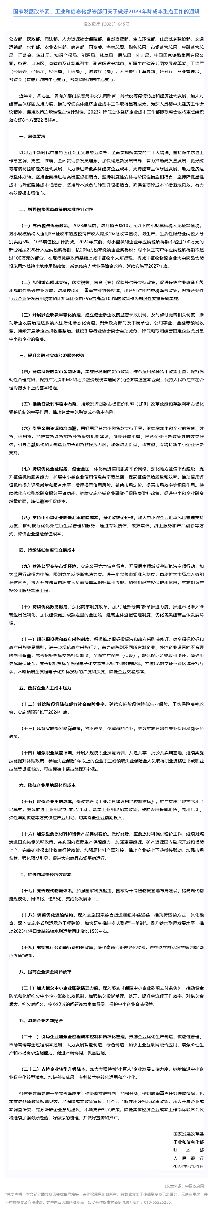 行业快讯 | 四部门近日发布《关于做好2023年降成本重点工作的通知》