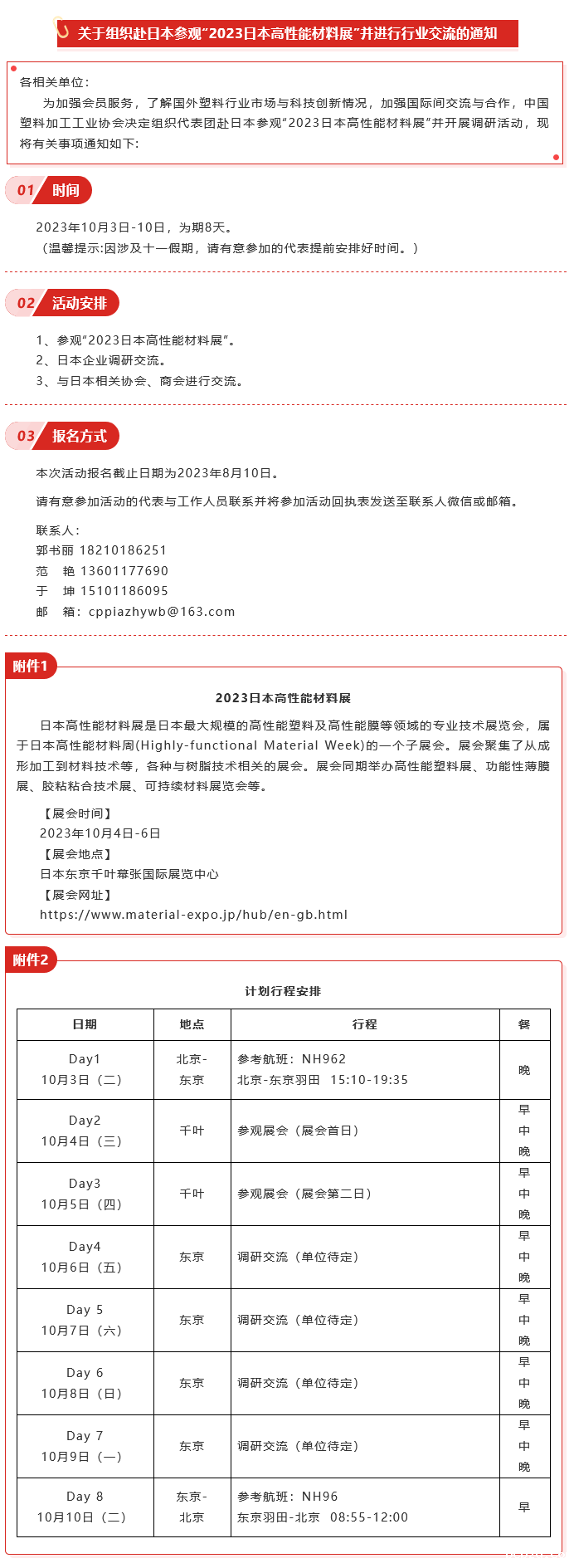 关于组织赴日本参观“2023日本高性能材料展”并进行行业交流的通知