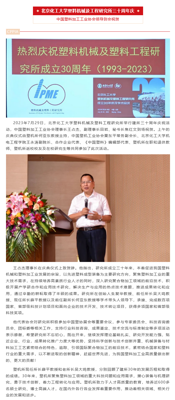 伟德投注官方网站入口领导到会祝贺北京化工大学塑料机械及工程研究所三十周年庆
