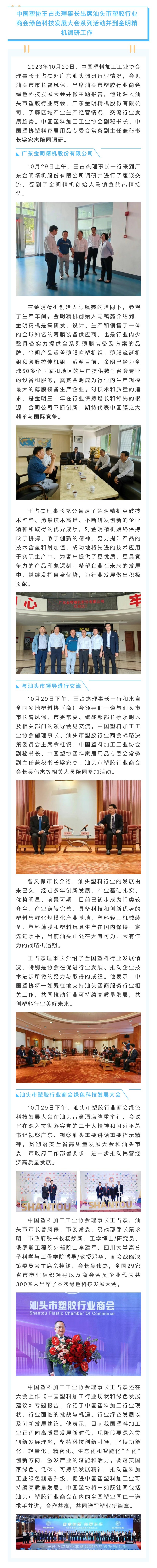 伟德投注官方网站入口王占杰理事长出席汕头市塑胶行业商会绿色科技发展大会系列活动并到金明精机调研工作