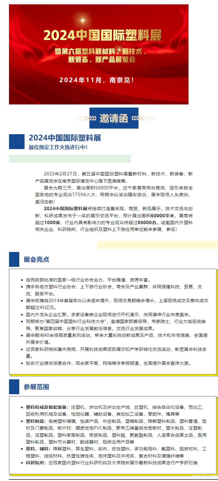 开抢啦!2024中国国际塑料展 展位预定工作火热进行中!