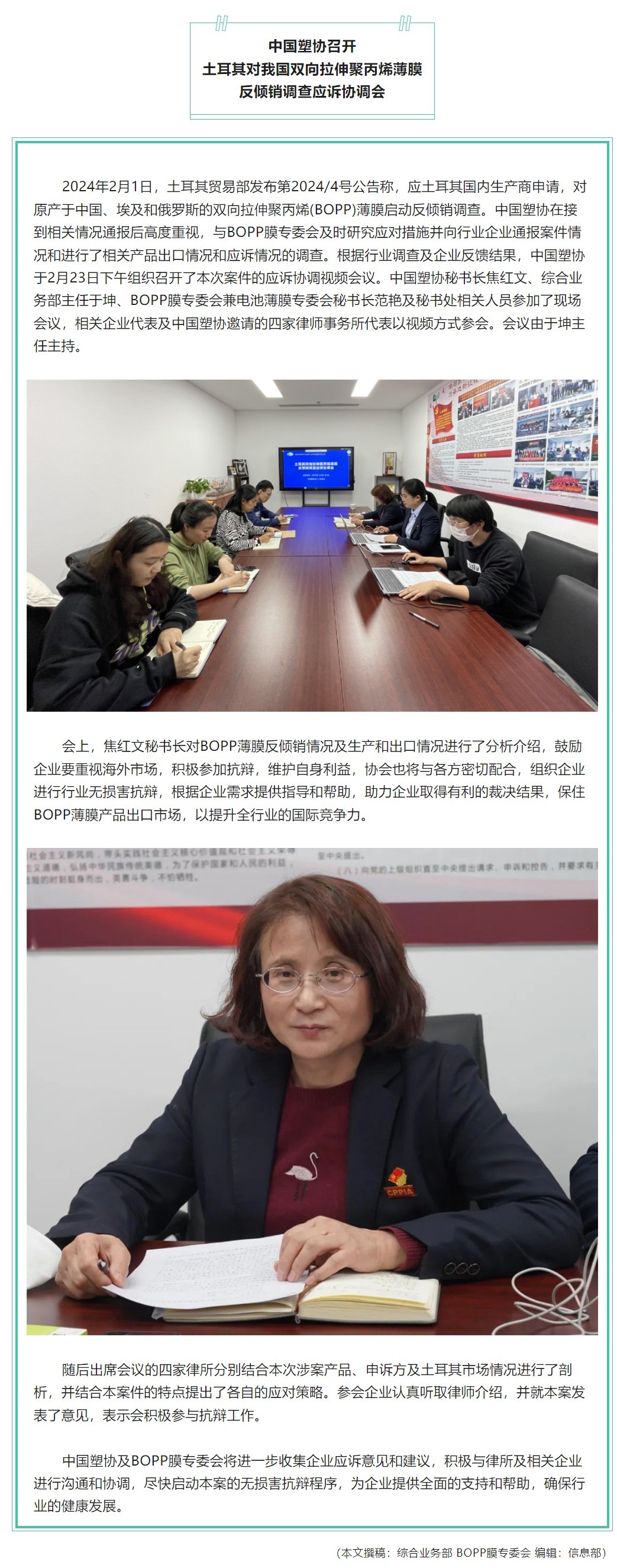 伟德投注官方网站入口召开土耳其对我国双向拉伸聚丙烯薄膜反倾销调查应诉协调会