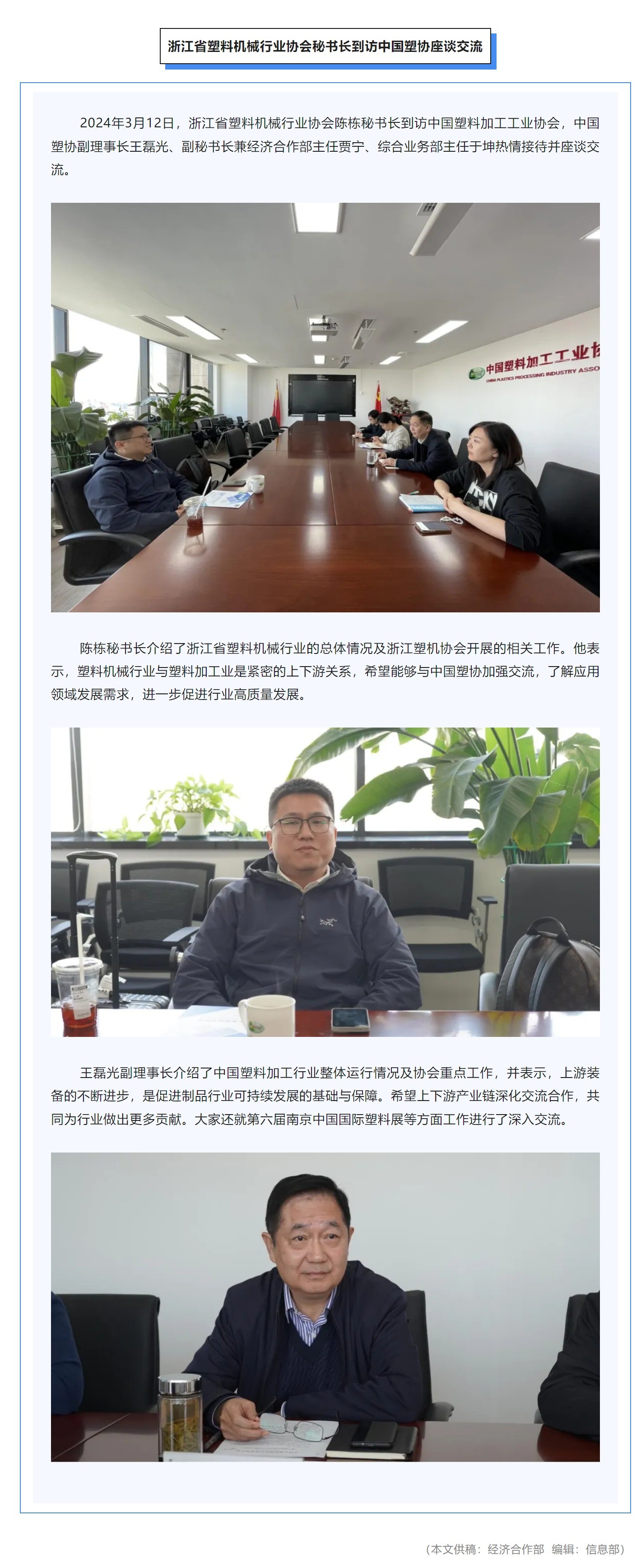 浙江省塑料机械行业协会秘书长到访伟德投注官方网站入口座谈交流