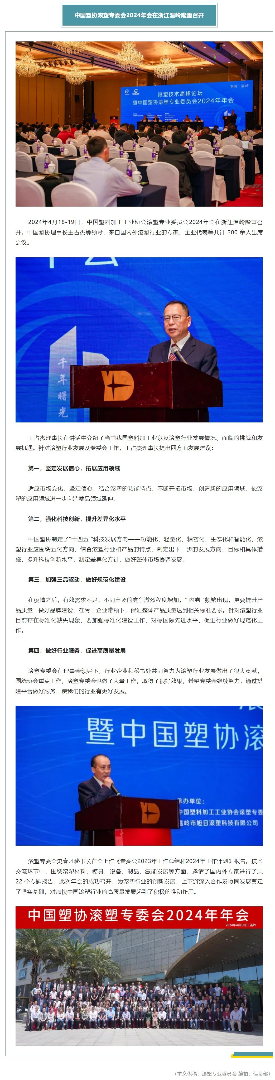 伟德投注官方网站入口滚塑专委会2024年会在浙江温岭隆重召开