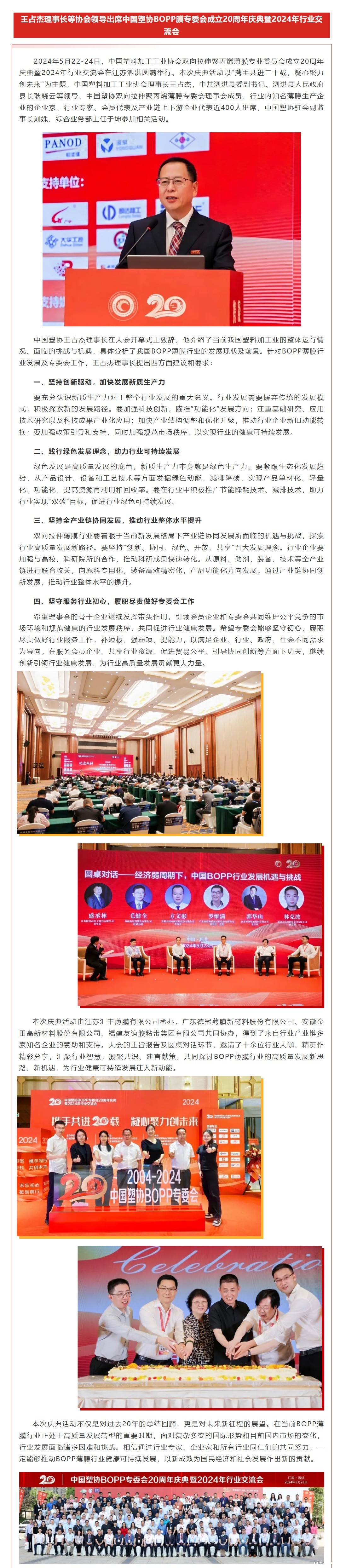 王占杰理事长等协会领导出席伟德投注官方网站入口BOPP膜专委会成立20周年庆典暨2024年行业交流会