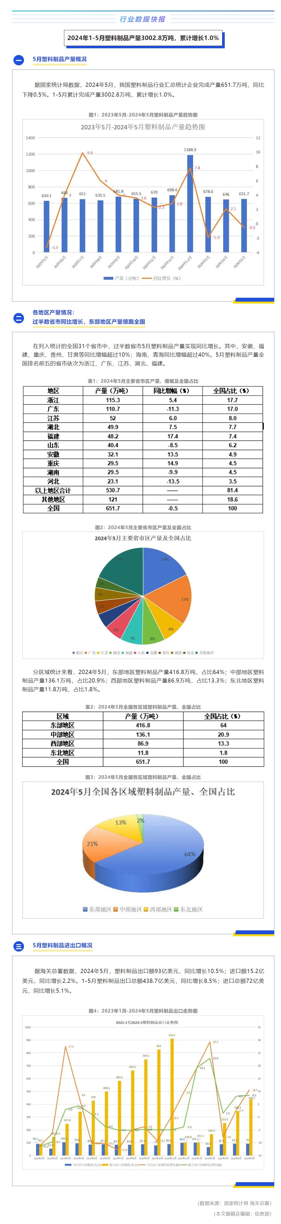 行业数据快报 | 2024年1-5月塑料制品产量3002.8万吨,累计增长1.0%
