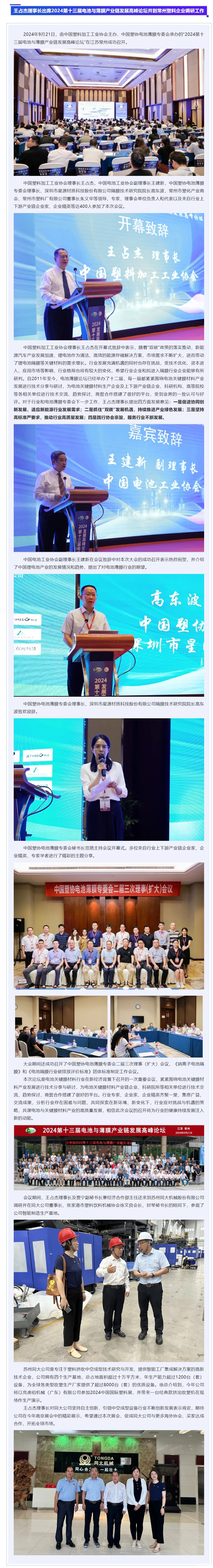 王占杰理事长出席2024第十三届电池与薄膜产业链发展高峰论坛并到常州塑料企业调研工作