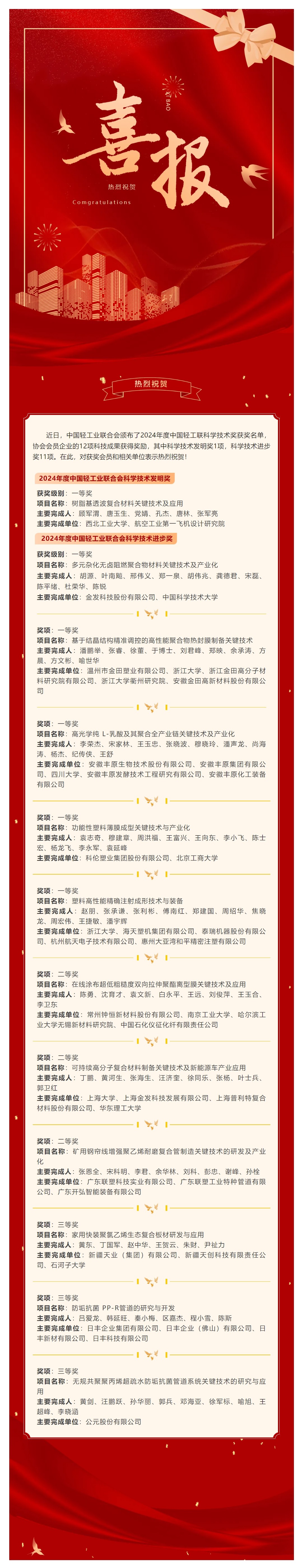 热烈祝贺多家会员企业获得2024年度中国轻工业联合会科学技术奖