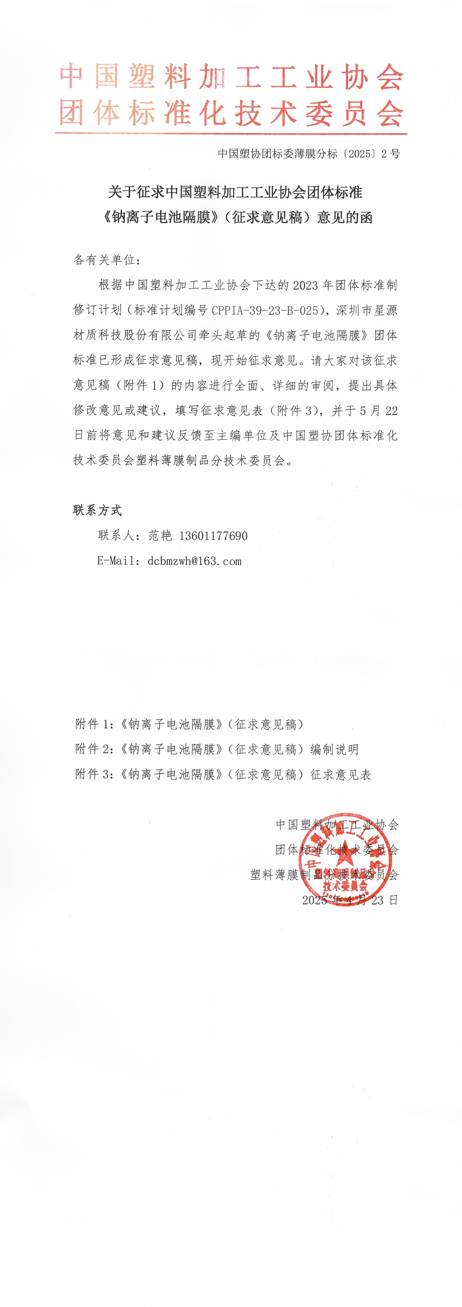 关于征求团体标准《纳离子电池隔膜标准》(征求意见稿)意见的函
