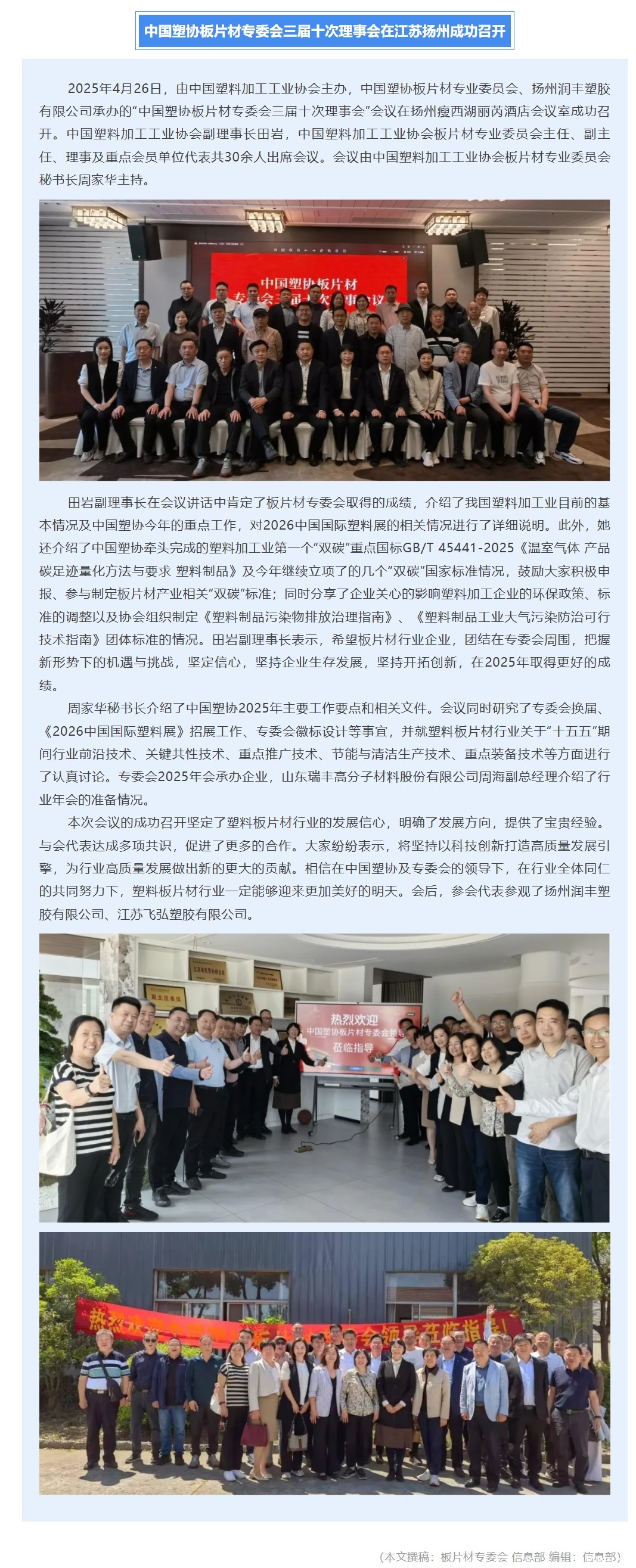 伟德投注官方网站入口板片材专委会三届十次理事会在江苏扬州成功召开