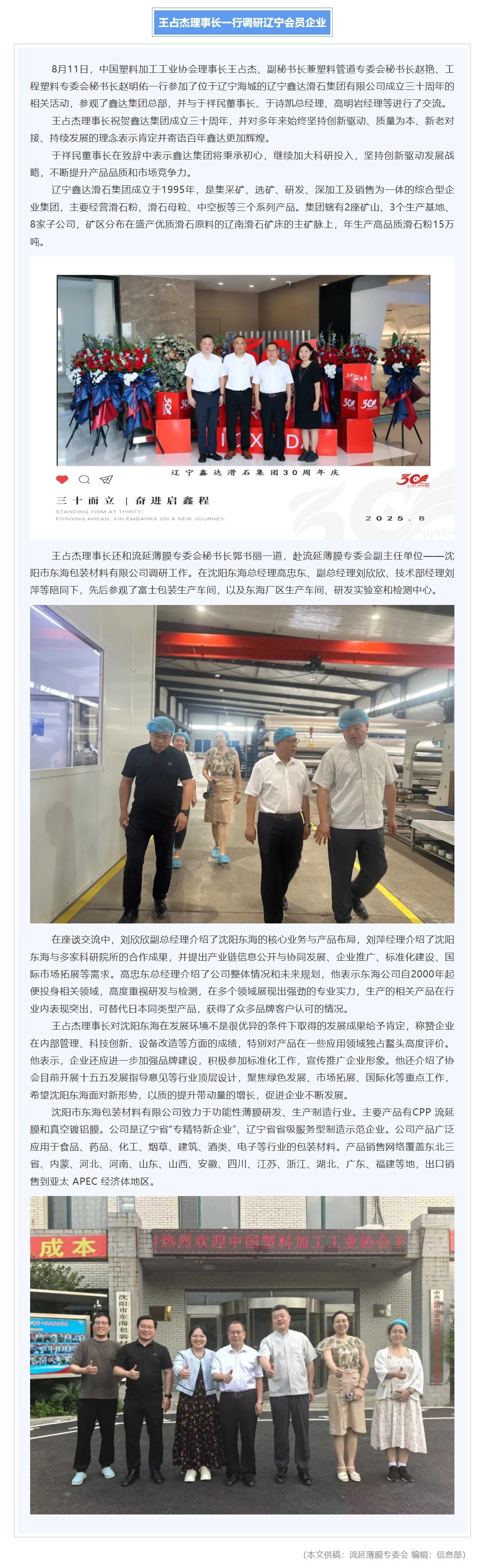 王占杰理事长一行调研辽宁会员企业