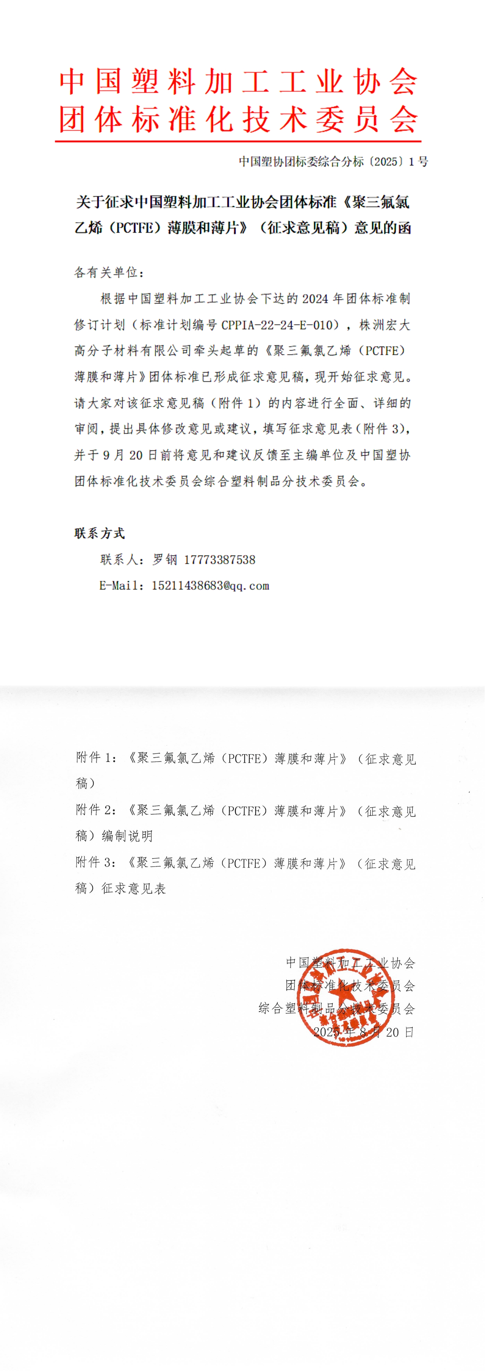 附件1:《聚三氟氯乙烯(PCTFE)薄膜和薄片》(征求意见稿).pdf
