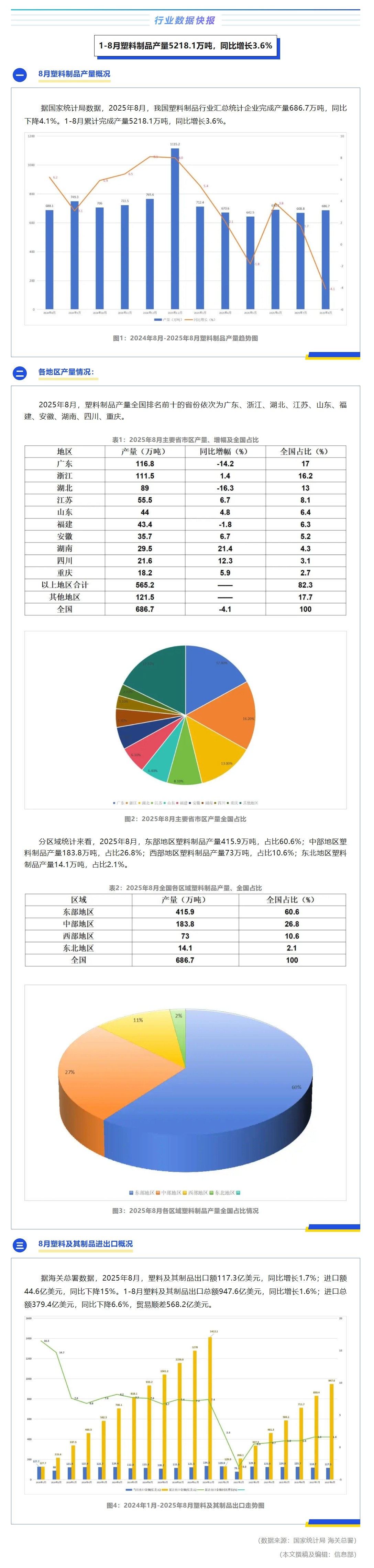 行业数据快报 | 1-8月塑料制品产量5218.1万吨,同比增长3.6%