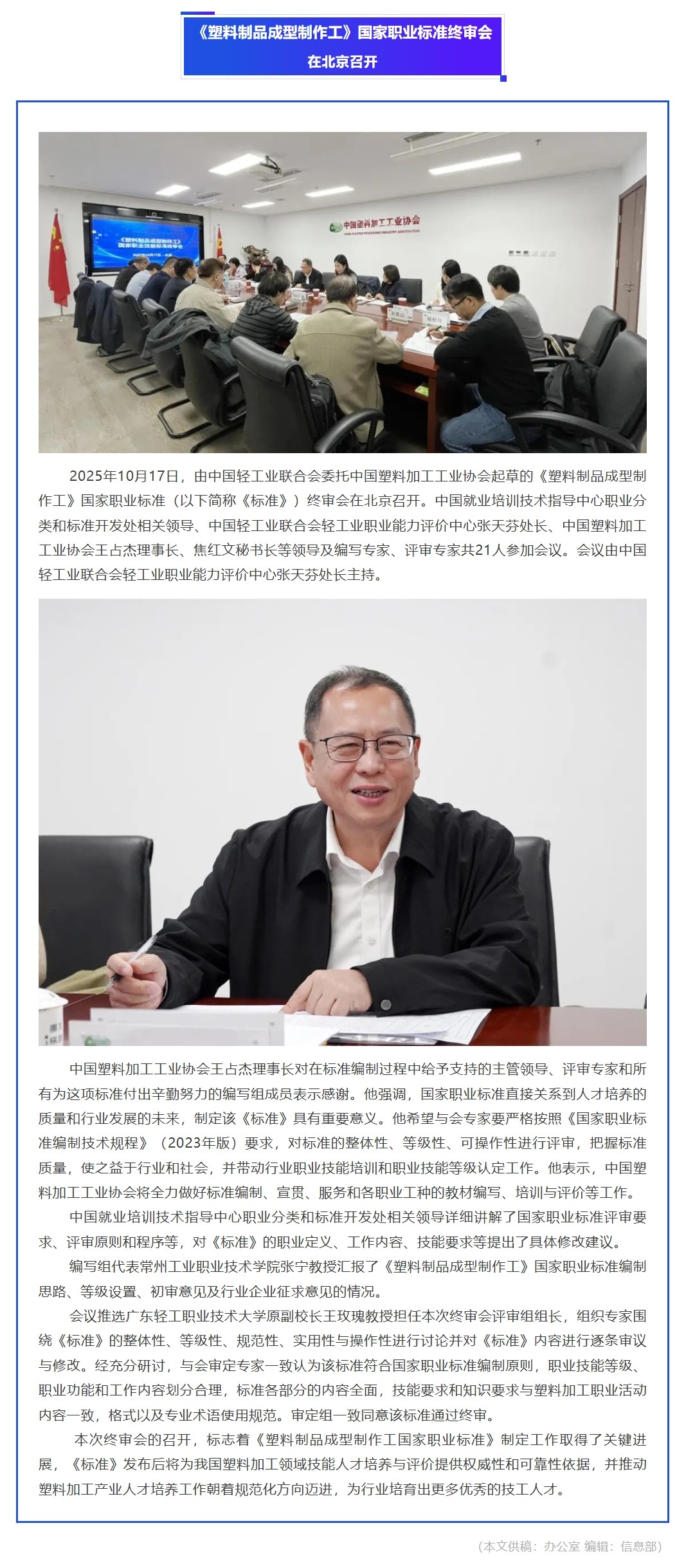 《塑料制品成型制作工》国家职业标准终审会在北京召开