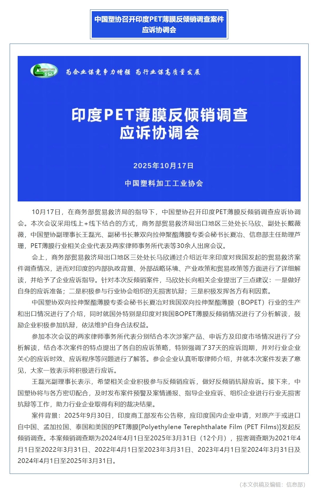 伟德投注官方网站入口召开印度PET薄膜反倾销调查案件应诉协调会