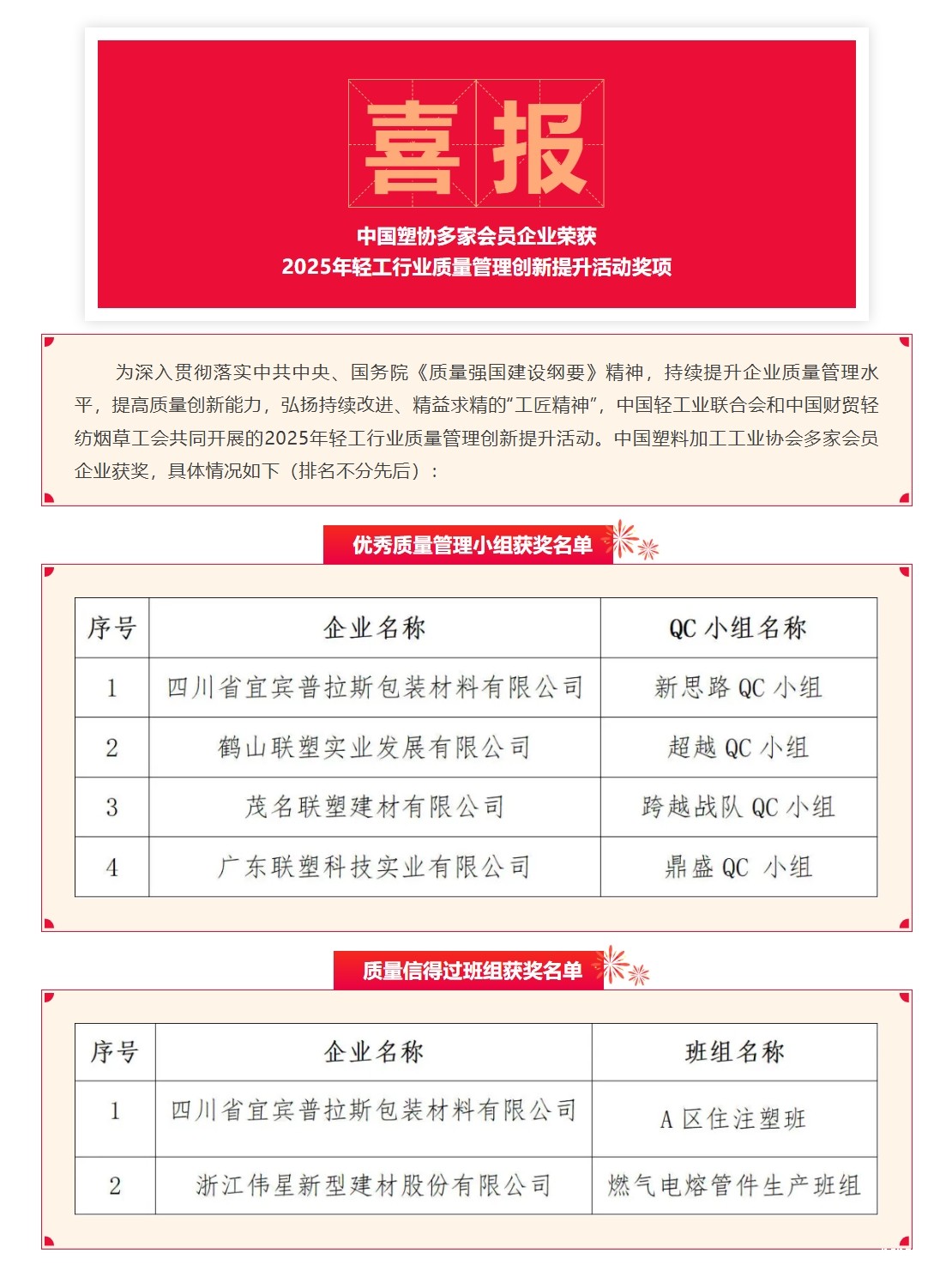 喜报 | 伟德投注官方网站入口多家会员企业荣获2025年轻工行业质量管理创新提升活动奖项